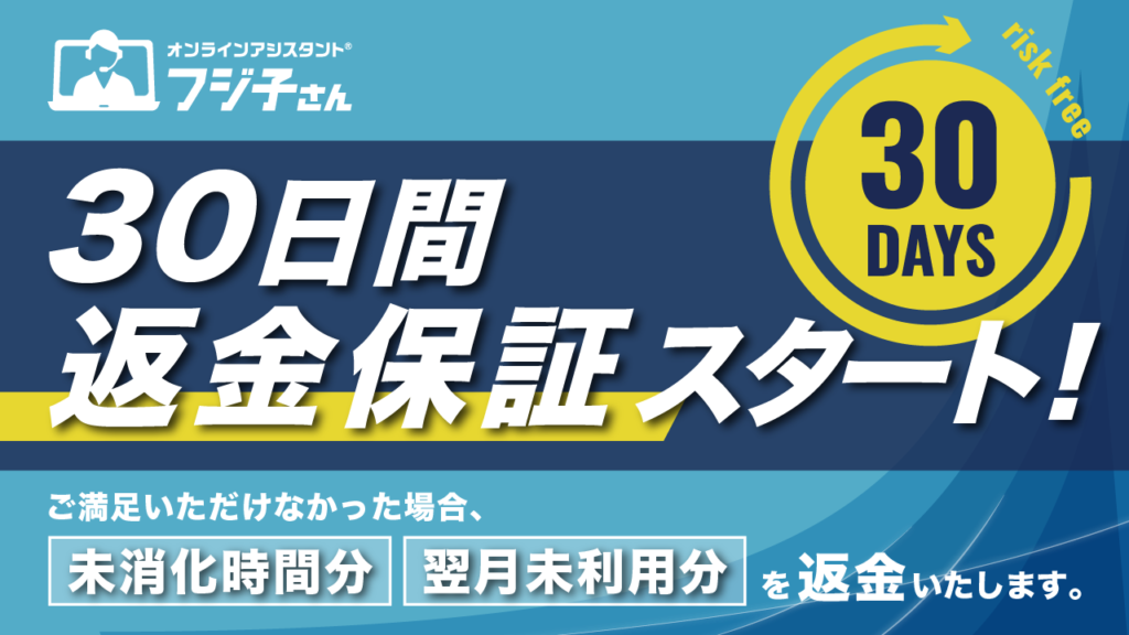この度当社では、オンラインアシスタント®「フジ子さん」を安心してご利用いただけるよう、「返金保証制度」をスタートいたします。